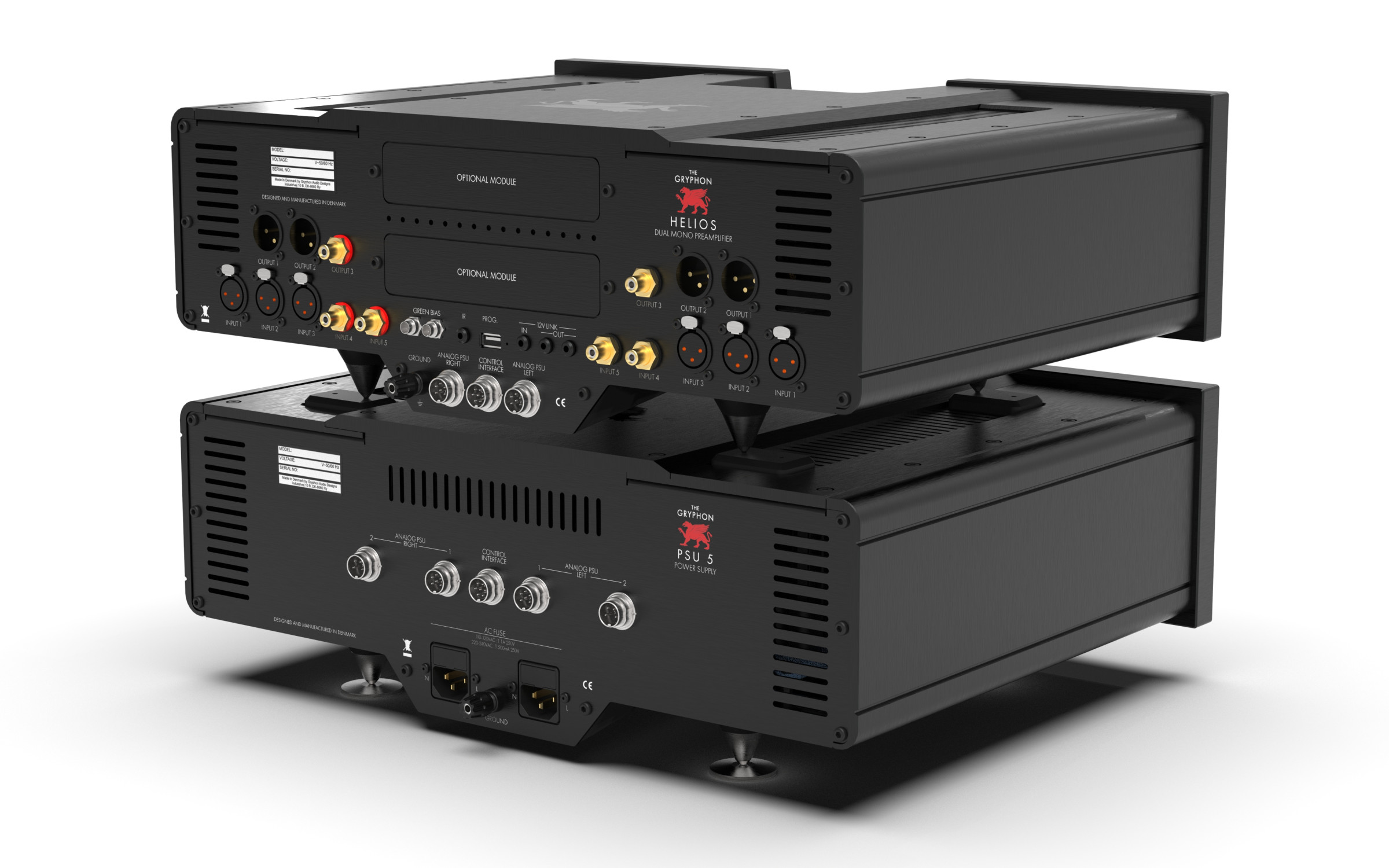 Der Helios ist für Gryphons aktuelle Modulplattform vorbereitet. Zwei rückseitige Steckplätze ermöglichen die Nachrüstung mit dem DAC3-Digitalmodul und/oder dem PS3-Phonomodul. Damit lässt sich der Vorverstärker sowohl beim Kauf als auch später flexibel an individuelle Anforderungen anpassen.